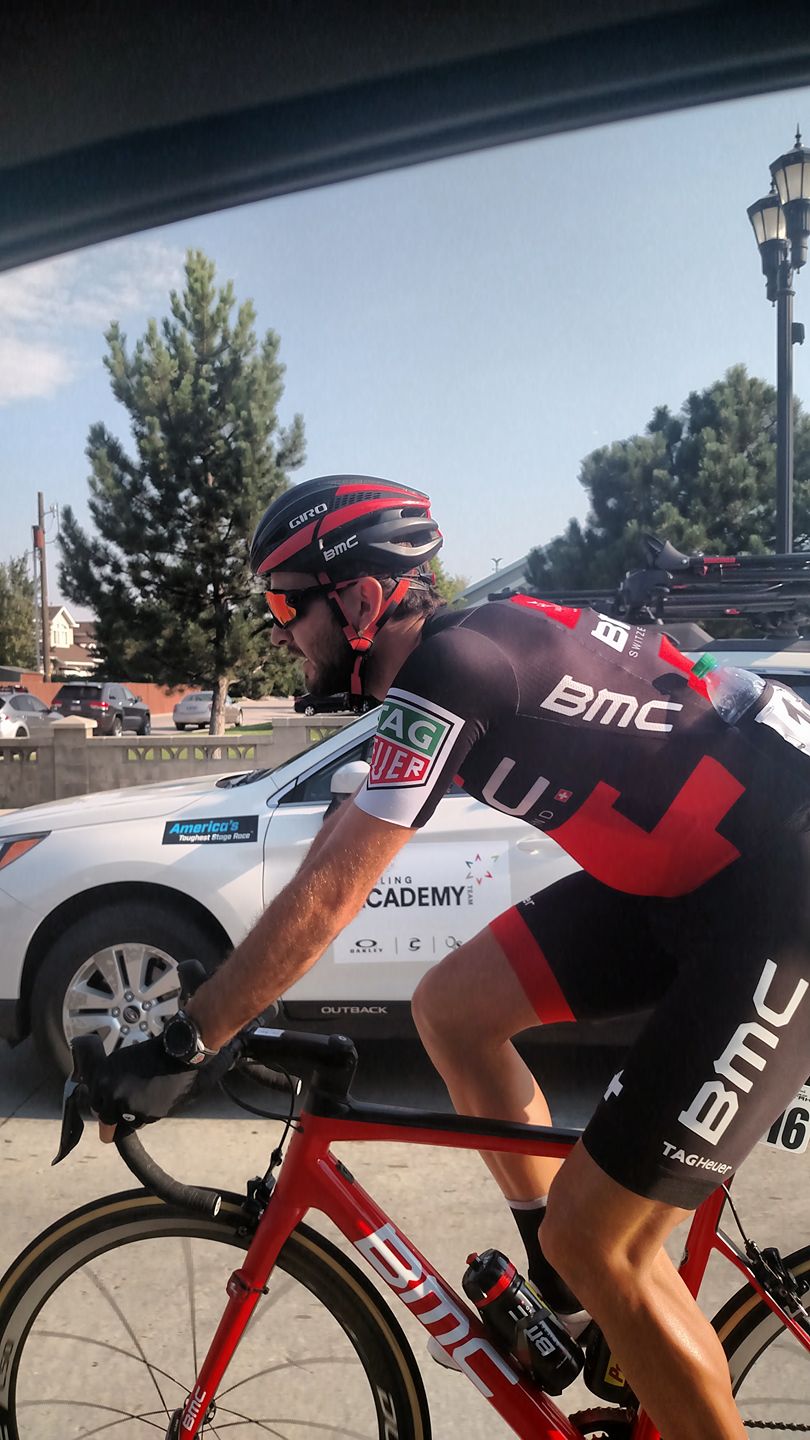 No down time for the director. On the way to the start of stage six of Tour of Utah.